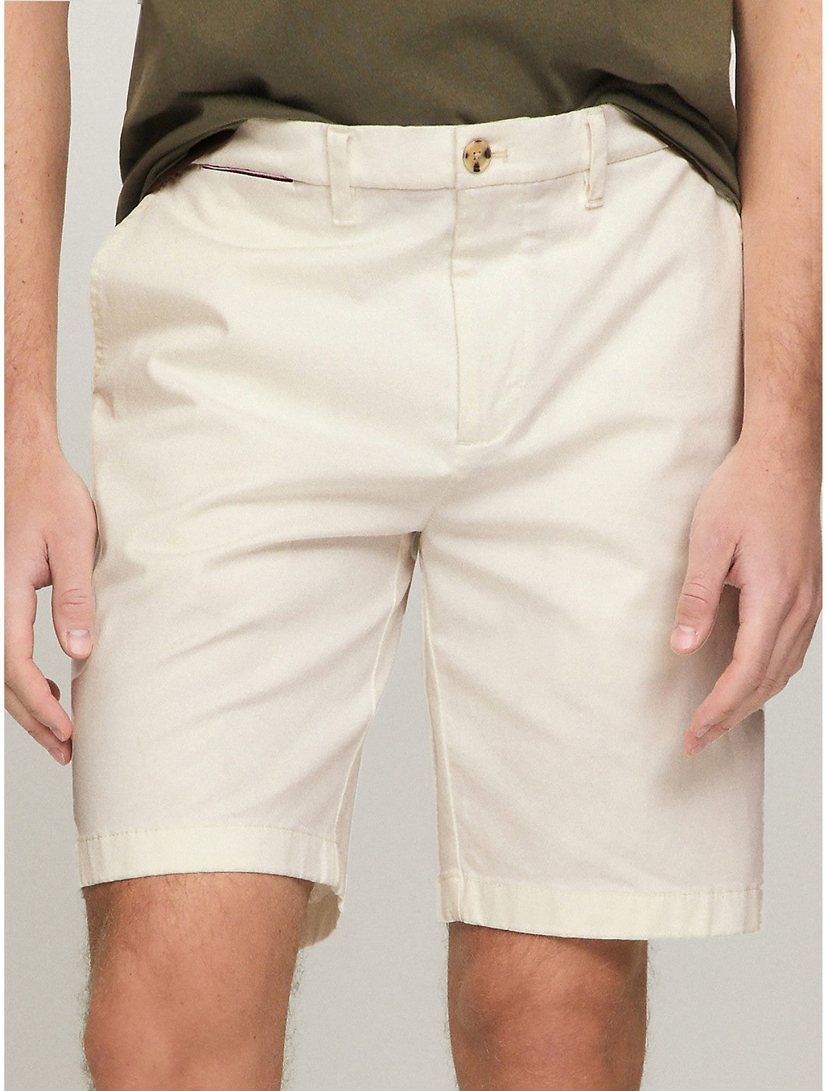 Tommy Hilfiger men's short. Made from premium cotton blended with THFlex fibers for added stretch, these shorts were designed with comfort in mind. Even better? This pair is cut to a 9" length for a flattering fit. Material - 77% Cotton.